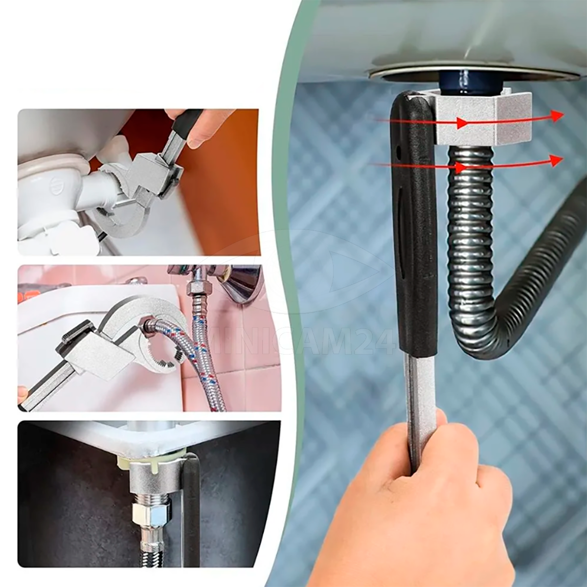 Этот набор гаечных ключей поставляется с 3 спецификациями патронов и подходит для различных типов трубы для раковины.